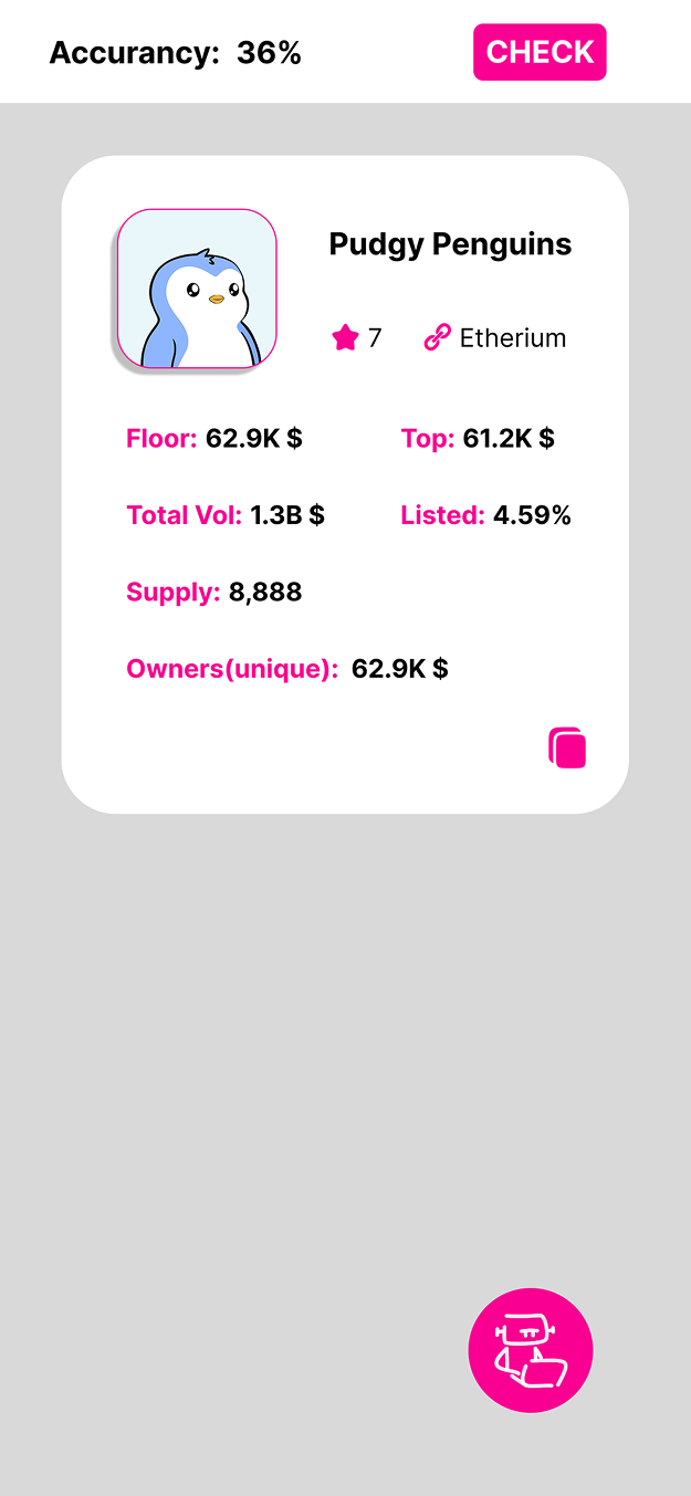 این پروژه یک اپلیکیشن اندرویدی است که با درخواست از api های سایت Coin Gecko اطلاعات مربوط به کالکشن های nft را بررسی کرده و سپس بر اساس داده ها و فرمول های تعریف شده به کالکشن ها امتیاز داده و هر کالکشن که امتیاز بیشتری داشته باشد، برای سرمایه گذاری بهتر است.